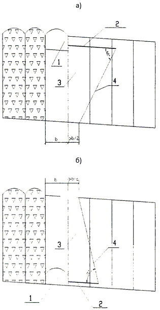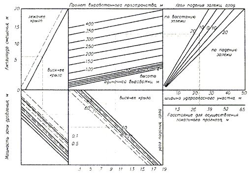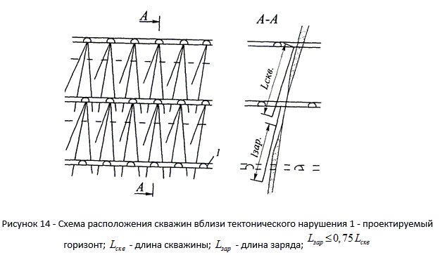 Расстояние между пучками (рядами) скважин, вес заряда и направление бурения скважин определяются экспериментально и регламентируются Указаниями.