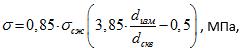 Величину максимальных нормальных напряжений на участках выработок, на которых визуально отмечено появление повышенных напряжений, можно определить по деформированию стенок скважины по формуле