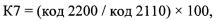 2.7. Рентабельность продаж по прибыли от реализации (К7) определяется как отношение прибыли от продаж к выручке по формуле: