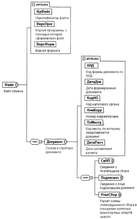 1. Настоящий формат описывает требования к XML файлам (далее - файлам обмена) передачи в электронном виде расчета суммы утилизационного сбора в отношении колесных транспортных средств (шасси) в налоговые органы.