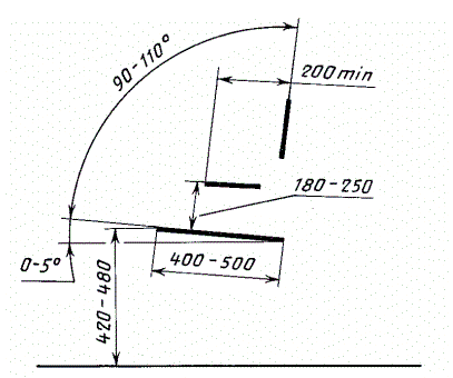 5. Расстояние между подлокотниками кресел должно быть не менее 450 мм. Размер определяют на расстоянии 200 мм от спинки.