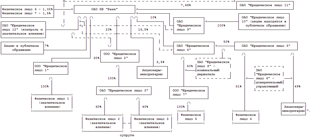 ПРИМЕР СОСТАВЛЕНИЯ СХЕМЫ ВЗАИМОСВЯЗЕЙ БАНКА И ЛИЦ, ПОД КОНТРОЛЕМ ЛИБО ЗНАЧИТЕЛЬНЫМ ВЛИЯНИЕМ КОТОРЫХ НАХОДИТСЯ БАНК