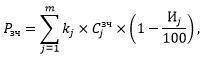 - стоимость новой запасной части j-го наименования, установка которой назначается взамен комплектующего изделия (детали, узла и агрегата) j-го наименования, подлежащего замене при восстановительном ремонте транспортного средства (рублей);