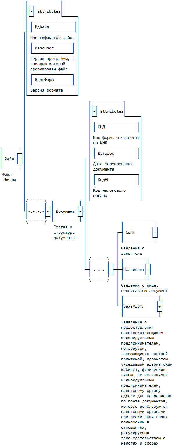XML схема файла обмена приводится отдельным файлом и размещается на сайте Федеральной налоговой службы.