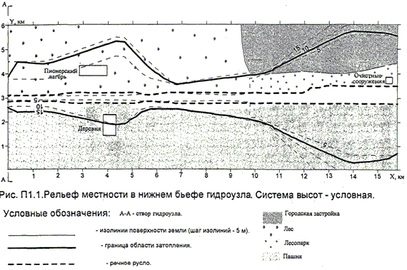 3.1.1. Для определения вероятного вреда от затопления территории в нижнем бьефе СГТС в результате прохождения волны прорыва в общем случае необходимо оценить зону затопления и гидродинамические параметры потока: