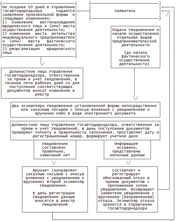 20. Заявитель обязан сообщить в Управление Госавтодорнадзора, ранее зарегистрировавшее Уведомление, о следующих изменениях: