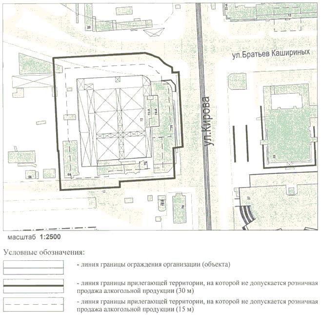 СХЕМА ГРАНИЦ ТЕРРИТОРИИ, НА КОТОРОЙ НЕ ДОПУСКАЕТСЯ РОЗНИЧНАЯ ПРОДАЖА АЛКОГОЛЬНОЙ ПРОДУКЦИИ, ПРИЛЕГАЮЩЕЙ К МАОУ ГИМНАЗИЯ N 23, АВТОШКОЛА ПО АДРЕСУ: КАЛИНИНСКИЙ РАЙОН УЛ. КИРОВА,44.