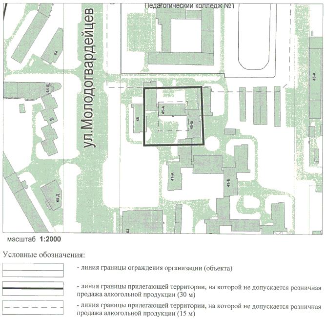 СХЕМА ГРАНИЦ ТЕРРИТОРИИ, НА КОТОРОЙ НЕ ДОПУСКАЕТСЯ РОЗНИЧНАЯ ПРОДАЖА АЛКОГОЛЬНОЙ ПРОДУКЦИИ, ПРИЛЕГАЮЩЕЙ К ЧЕЛЯБИНСКИЙ ПЕДАГОГИЧЕСКИЙ КОЛЛЕДЖ N 1 ПО АДРЕСУ: КАЛИНИНСКИЙ РАЙОН, УЛ. МОЛОДОГВАРДЕЙЦЕВ, 43