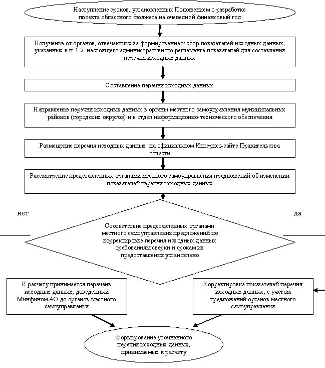 В случае не направления органом местного самоуправления муниципального района (городского округа) либо органом, отвечающим за формирование и сбор показателей исходных данных (главного администратора доходов) в установленный срок предложений по сверке исходных данных, по которым необходимо произвести корректировку, специалистами отдела методологии бюджетного процесса для расчетов межбюджетных трансфертов по данному органу местного самоуправления принимается перечень исходных данных, доведенный минфином АО до органов местного самоуправления. Предложения, направленные после установленного срока, не рассматриваются.