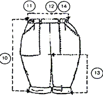 2. Измерения позиции 22 и 23 проводятся по внутренней стороне изделия в том случае, когда изделие стеганное или на подкладке.