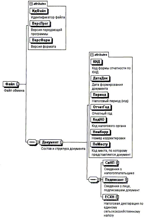 XML схема файла обмена приводится отдельным файлом и размещается на сайте Федеральной налоговой службы.