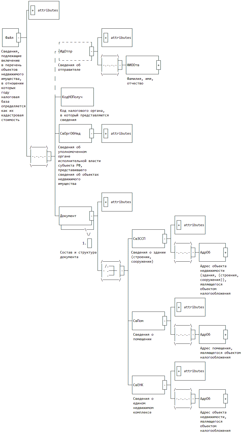 | Сведения об уполномоченном органе исполнительной власти субъекта Российской Федерации, представившего сведения об объектах недвижимого имущества | СвОргОбНед | С | О | Состав элемента представлен в табл. 4.3 | |