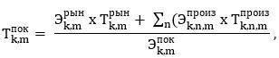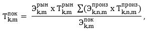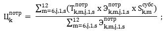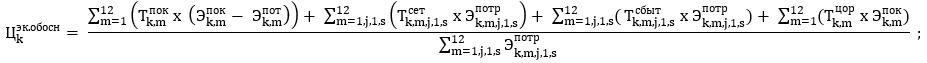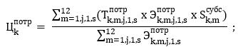 - средневзвешенная цена покупки электрической энергии единым закупщиком в m-м месяце соответствующего года в k-м субъекте Российской Федерации (рублей/МВт·ч);
