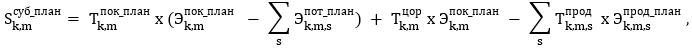- плановый объем продажи электрической энергии единым закупщиком в m-м месяце соответствующего года s-му гарантирующему поставщику (иной энергосбытовой, энергоснабжающей организации), за исключением планового объема потерь электрической энергии при ее передаче по электрическим сетям в k-м субъекте Российской Федерации (МВт·ч).";