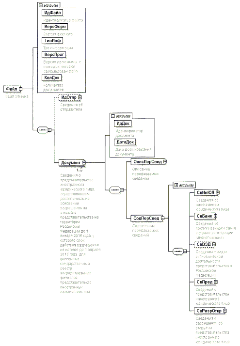 4. Логическая модель файла обмена представлена в виде диаграммы структуры файла обмена на рисунке 1 настоящего формата. Элементами логической модели файла обмена являются элементы и атрибуты XML файла. Перечень структурных элементов логической модели файла обмена и сведения о них приведены в таблицах 4.1 - 4.17 настоящего формата.