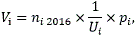 численность детей в возрасте от 3 до 7 лет, проживающих в i-м субъекте Российской Федерации, на 1 января 2016 г.;