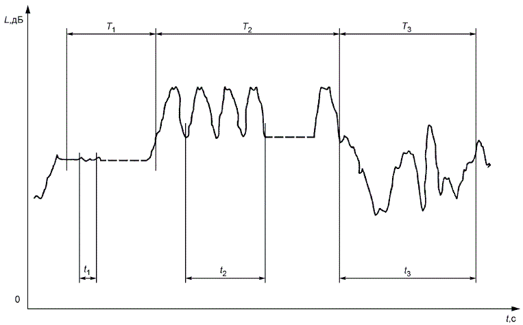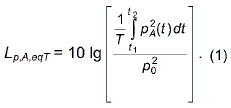 3.1 эквивалентный уровень звука 1) (А-weighted equivalent continuous sound pressure level) : Выраженные в децибелах, дБ 2), десять десятичных логарифмов отношения усредненного на заданном временном интервале Т (с началом