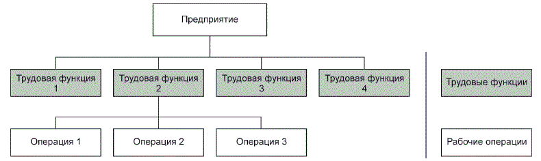 Рисунок 1 - Пример трудовых функций и рабочих операций в иерархии производства
