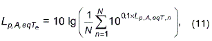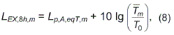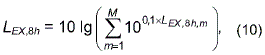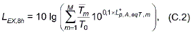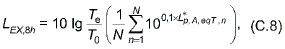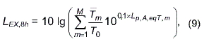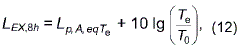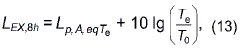 где - эквивалентный уровень звука, определенный в соответствии с настоящим стандартом для номинального рабочего дня, характеризующегося временным интервалом