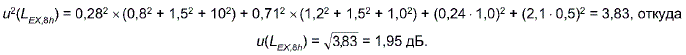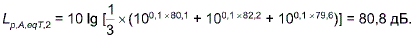 Расчет эквивалентного уровня звука за 8-часовой рабочий день по формуле (13) дал