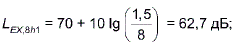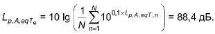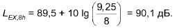 = 88,4 дБ эквивалентный уровень звука за 8-часовой рабочий день для группы равного шумового воздействия рассчитан по формуле (13)