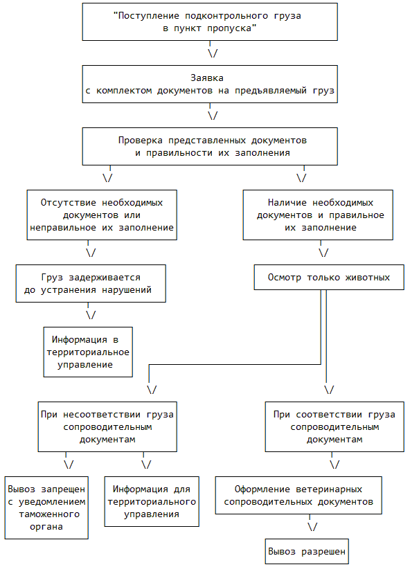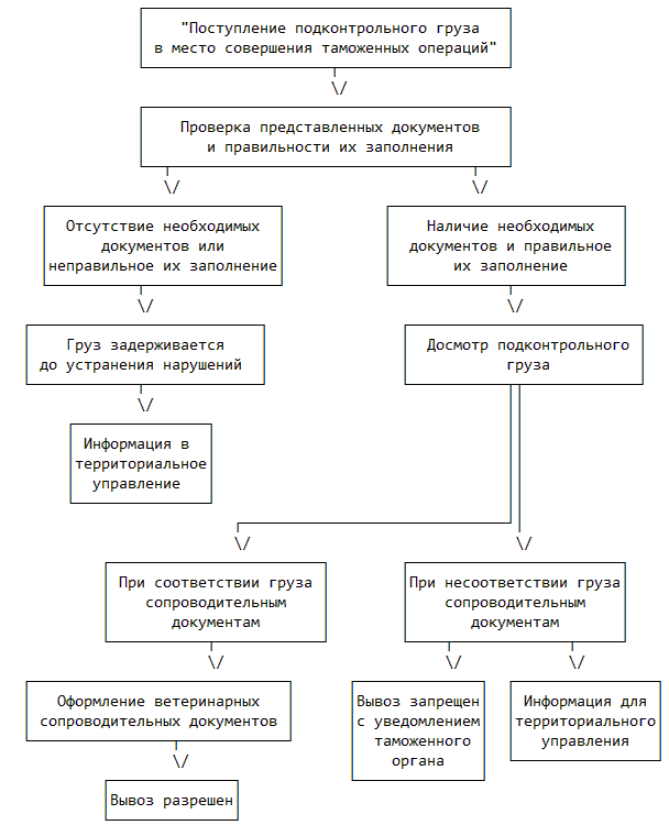 92. Юридическим фактом, являющимся основанием для начала данной административной процедуры, является поступление в пункт пропуска или место совершения таможенных операций подконтрольного товара и представления владельцем товара ветеринарного сопроводительного документа на подконтрольные товары, в котором должна содержаться информация о выполнении ветеринарных требований государства-импортера, о номере и дате разрешения Главного государственного ветеринарного инспектора Российской Федерации на вывоз подконтрольного товара.