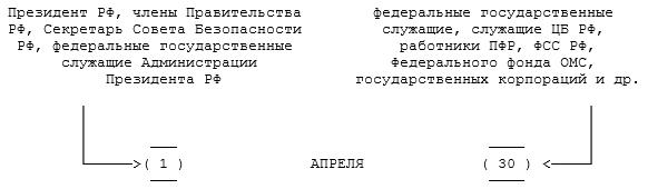 а) не позднее 1 апреля года, следующего за отчетным (Президент Российской Федерации, члены Правительства Российской Федерации, Секретарь Совета Безопасности Российской Федерации, федеральные государственные служащие Администрации Президента Российской Федерации);
