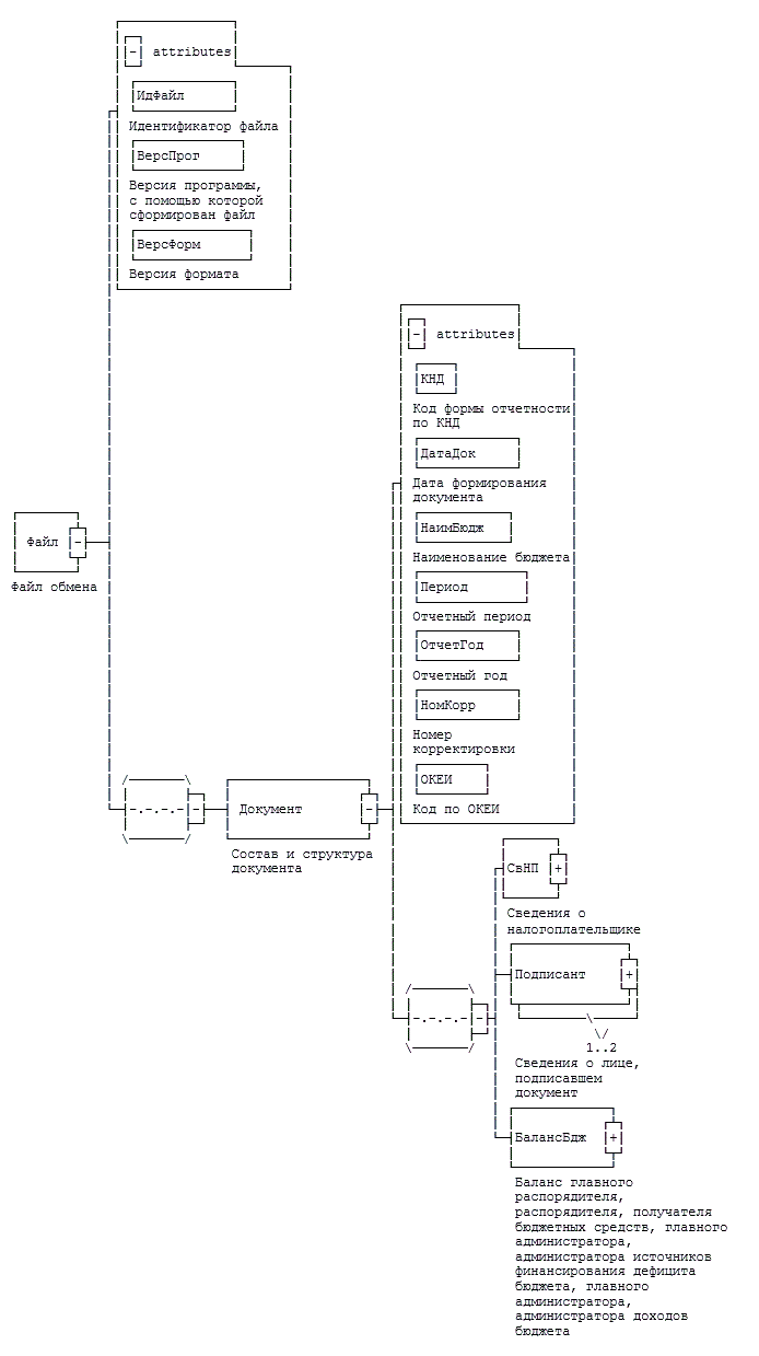 XML схема файла обмена приводится отдельным файлом и размещается на сайте Федеральной налоговой службы.