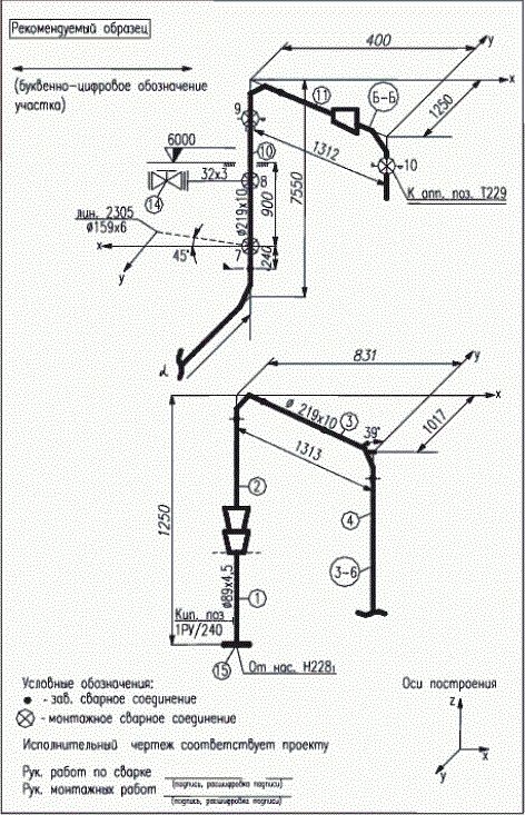 (NN чертежей расположения трубопровода, буквенно - цифровое обозначение участков)