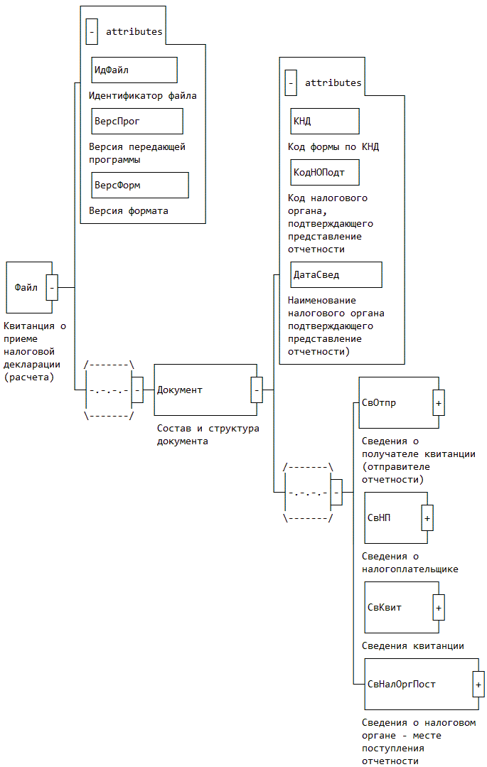 | Код формы отчетности по КНД | КНД | А | T(=7) | НК | Типовой элемент <КНДТип>. Код декларации (расчета) в соответствии с Классификатором налоговой документации. Обязателен при возможности форматного контроля элемента в полученном файле |