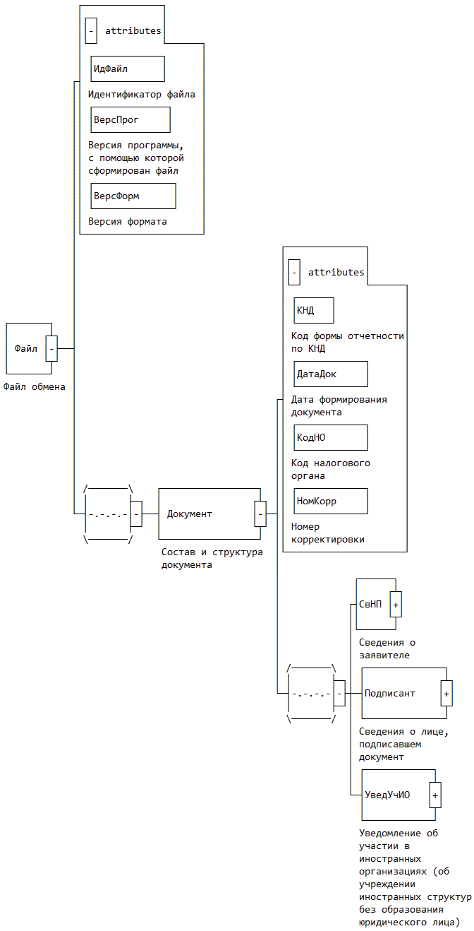 XML схема файла обмена приводится отдельным файлом и размещается на официальном сайте Федеральной налоговой службы.