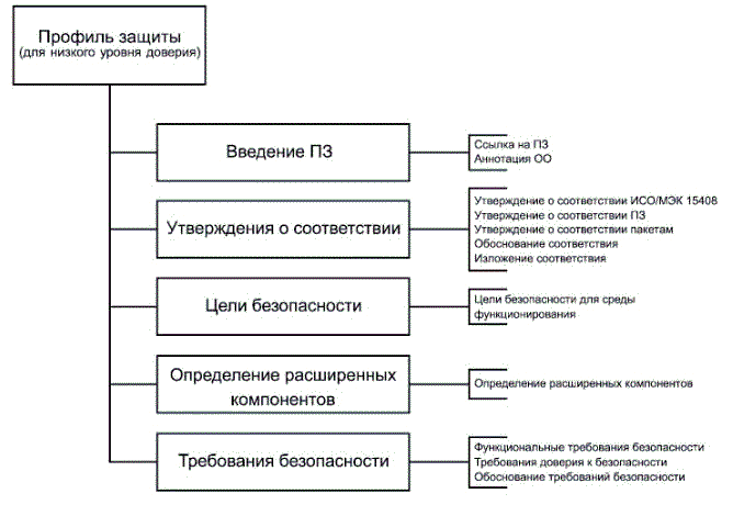 ПЗ для низкого уровня доверия (упрощенное ПЗ) соотносится с обычным ПЗ (т.е. ПЗ с полным содержанием) так же, как и ЗБ для низкого уровня доверия (упрощенное ЗБ) соотносится с обычным ЗБ. Это означает, что упрощенное ПЗ включает: