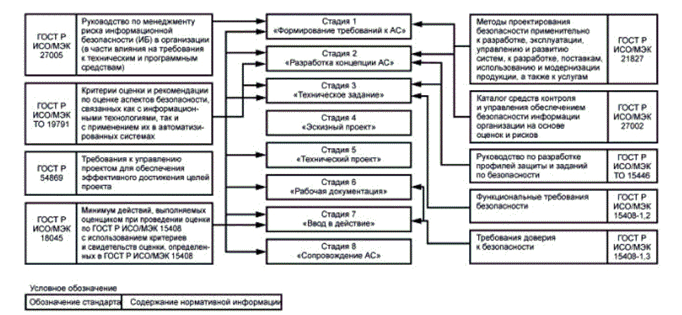 5.12 Мероприятия по ЗИ должны проводиться на всех стадиях и этапах создания АСЗИ с учетом применимых (исходя из предназначения АСЗИ) требований нормативных правовых актов и методических документов уполномоченных федеральных органов исполнительной власти и национальных стандартов в области ЗИ.
