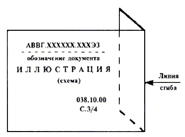 А.1.15 При расположении иллюстрации на листе увеличенного формата фальцовка листа должна обеспечивать видимость номера страницы. Незаполненная страница (обратная сторона фальцованного листа) должна быть обозначена на предыдущей странице в виде дроби. Пример оформления листов увеличенного формата (правила фальцовки) приведены на рисунке А.1.