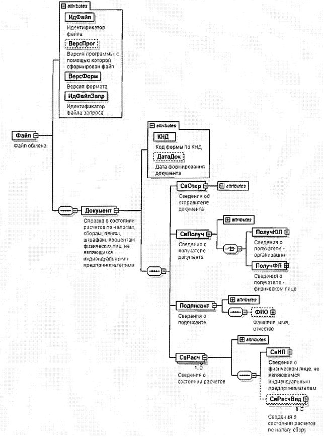 1. Настоящий документ описывает требования к XML файлам передачи налоговым органом в электронной форме сведений по форме Справки о состоянии расчетов по налогам, сборам, пеням, штрафам, процентам физических лиц, не являющихся индивидуальными предпринимателями (далее - файл обмена).