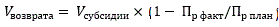 Пр факт - фактически достигнутое значение показателя результативности и эффективности использования субсидии на отчетную дату;