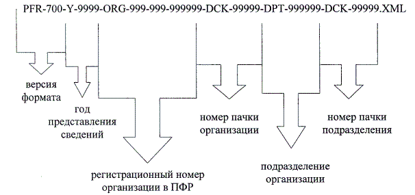 В данной версии формата поля шаблона имени файла "Подразделение организации" и "Номер подразделения организации" не заполняются.