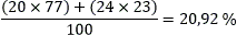 5.4 Пересчет влажности на всю партию кукурузы в початках проводят, исходя из массового соотношения зерна и стержней, например: при влажности зерна 20 %, стержней - 24 % и соотношении зерна и стержней 77:23 влажность кукурузы в початках будет равняться: