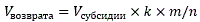 - Коэффициент возврата субсидии (k) рассчитывается по формуле: