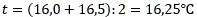 = 16,5 °С. Среднеарифметическое значение температуры пробы будет равно