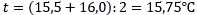 = 16,0 °С. Среднеарифметическое значение температуры пробы будет равно: