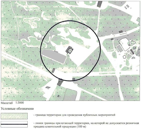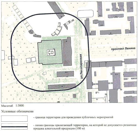 СХЕМА ГРАНИЦ ТЕРРИТОРИИ, НА КОТОРОЙ НЕ ДОПУСКАЕТСЯ РОЗНИЧНАЯ ПРОДАЖА АЛКОГОЛЬНОЙ ПРОДУКЦИИ, ПРИЛЕГАЮЩЕЙ К ПЛОЩАДКЕ У ВЕЧНОГО ОГНЯ НА АЛЛЕЕ СЛАВЫ