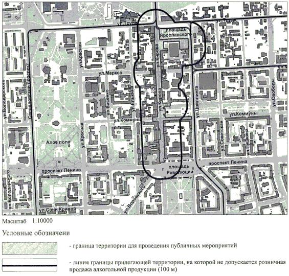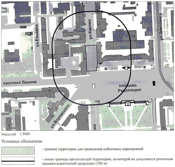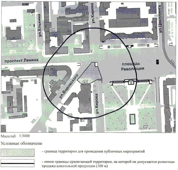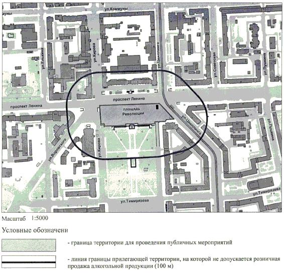 СХЕМА ГРАНИЦ ТЕРРИТОРИИ, НА КОТОРОЙ НЕ ДОПУСКАЕТСЯ РОЗНИЧНАЯ ПРОДАЖА АЛКОГОЛЬНОЙ ПРОДУКЦИИ, ПРИЛЕГАЮЩЕЙ К ПЛОЩАДИ РЕВОЛЮЦИИ