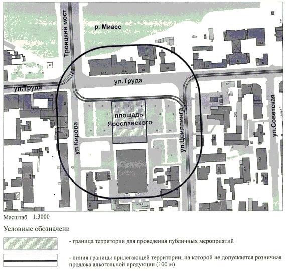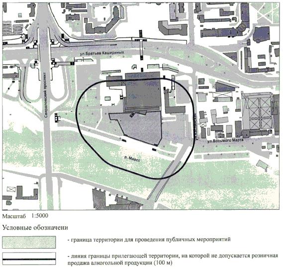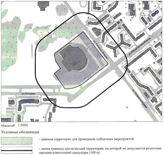 СХЕМА ГРАНИЦ ТЕРРИТОРИИ, НА КОТОРОЙ НЕ ДОПУСКАЕТСЯ РОЗНИЧНАЯ ПРОДАЖА АЛКОГОЛЬНОЙ ПРОДУКЦИИ, ПРИЛЕГАЮЩЕЙ К ПЛОЩАДКЕ У АДМИНИСТРАЦИИ ГОРОДА ЧЕЛЯБИНСКА