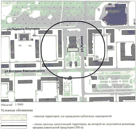 СХЕМА ГРАНИЦ ТЕРРИТОРИИ, НА КОТОРОЙ НЕ ДОПУСКАЕТСЯ РОЗНИЧНАЯ ПРОДАЖА АЛКОГОЛЬНОЙ ПРОДУКЦИИ, ПРИЛЕГАЮЩЕЙ К ПЛОЩАДКЕ У ЮЖНО-УРАЛЬСКОГО ГОСУДАРСТВЕННОГО УНИВЕРСИТЕТА