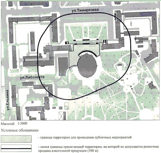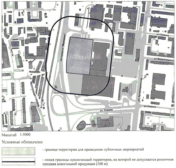 СХЕМА ГРАНИЦ ТЕРРИТОРИИ, НА КОТОРОЙ НЕ ДОПУСКАЕТСЯ РОЗНИЧНАЯ ПРОДАЖА АЛКОГОЛЬНОЙ ПРОДУКЦИИ, ПРИЛЕГАЮЩЕЙ К ПЛОЩАДКЕ У ЛЕДОВОЙ АРЕНЫ "ТРАКТОР"