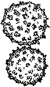 3.1.10 пыльцевые зерна хлопчатника: Пыльцевые зерна хлопчатника двухклеточные. Форма зерен округлая, правильно сфероидальная, зерна крупные, размером 90 - 120 мкм, многопоровые, мелкобугорчатые, крупношиповатые.