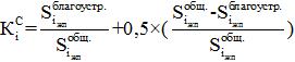 1.4. Коэффициент, учитывающий особые условия предоставления услуги i-го вида, отражающий факторы, влияющие на стоимость предоставляемых бюджетных услуг по i-му виду расходов, в расчете на одного потребителя бюджетных услуг в i-м городском, сельском поселении, рассчитывается по формуле: