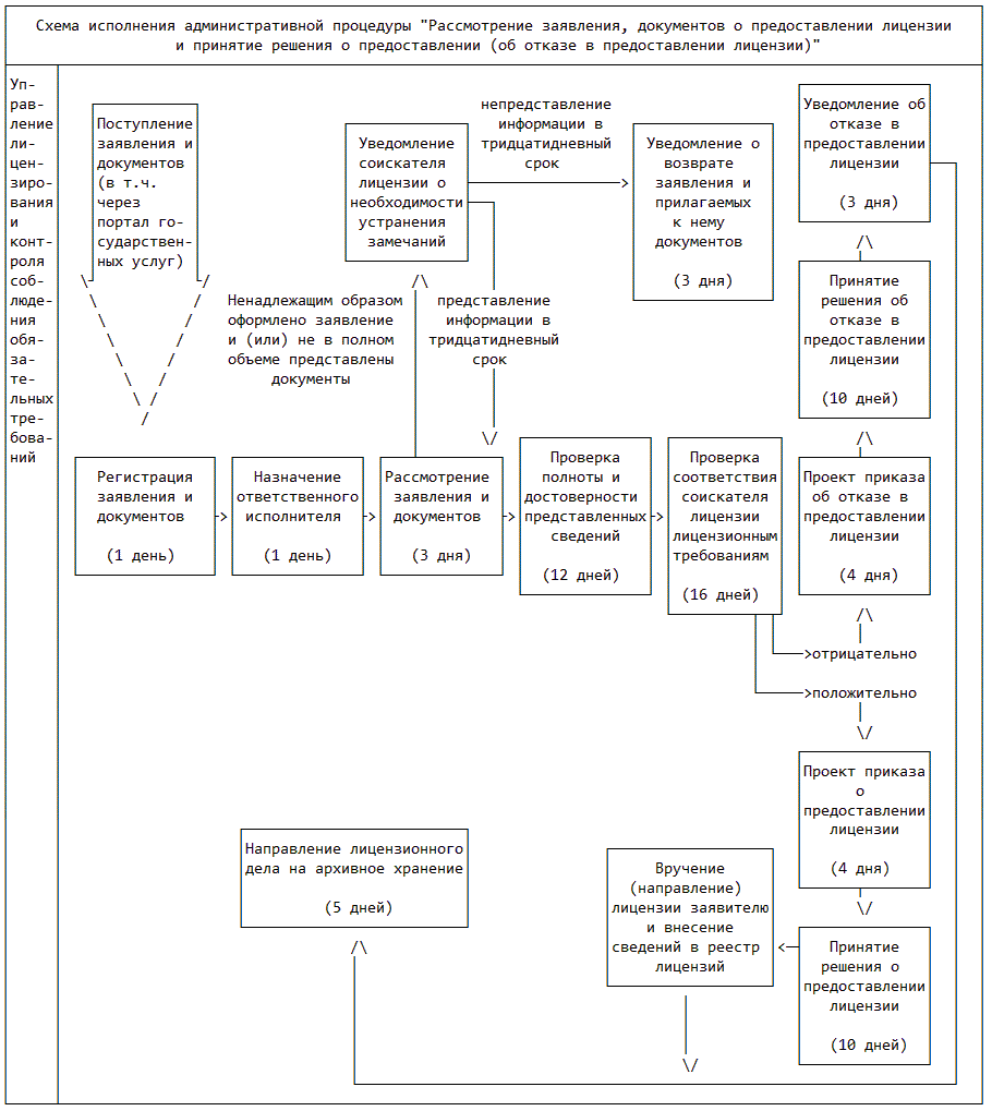 1) принятие решения о предоставлении (об отказе в предоставлении) лицензии - 45 рабочих дней со дня поступления в Росздравнадзор надлежащим образом оформленного заявления о предоставлении лицензии и документов (сведений), предусмотренных пунктом 19 Административного регламента;