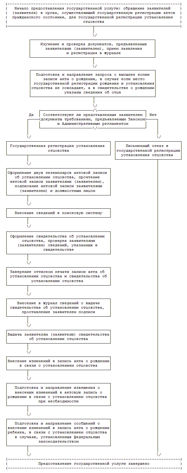 После получения копии актовой записи о рождении ребенка производится государственная регистрация установления отцовства либо выдается отказ в государственной регистрации установления отцовства (статья 53 Федерального закона).